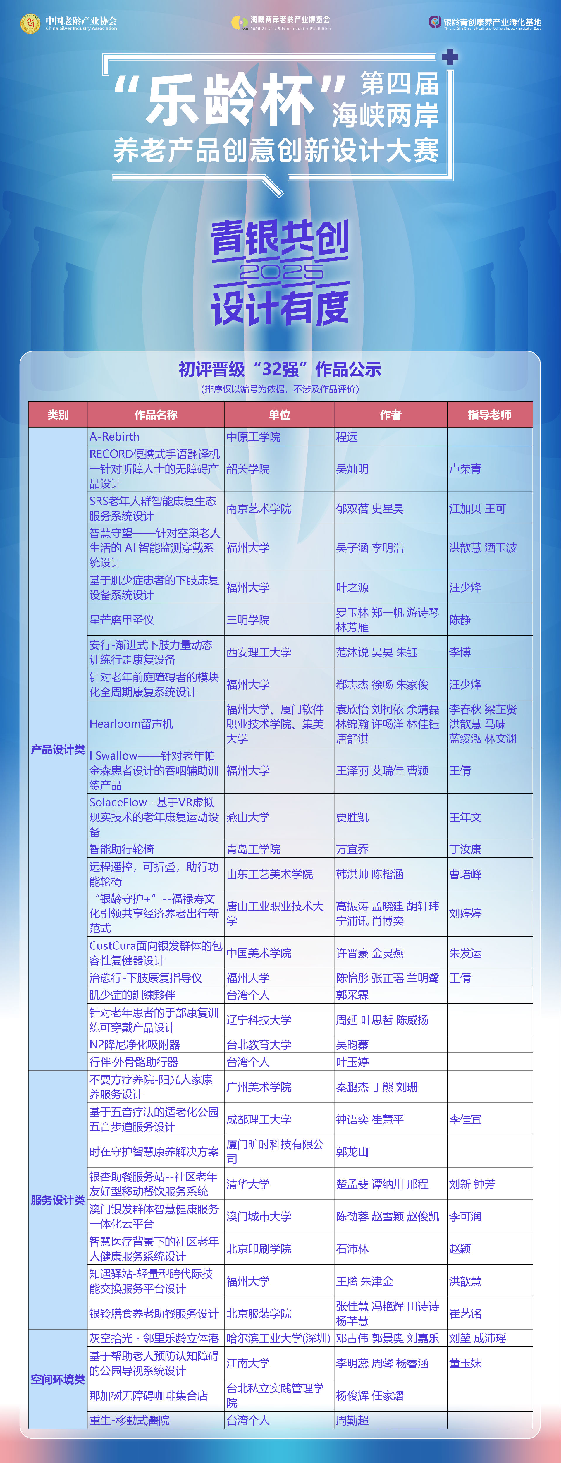 公布|第四届“乐龄杯”海峡两岸养老产品创意创新设计大赛晋级作品公示